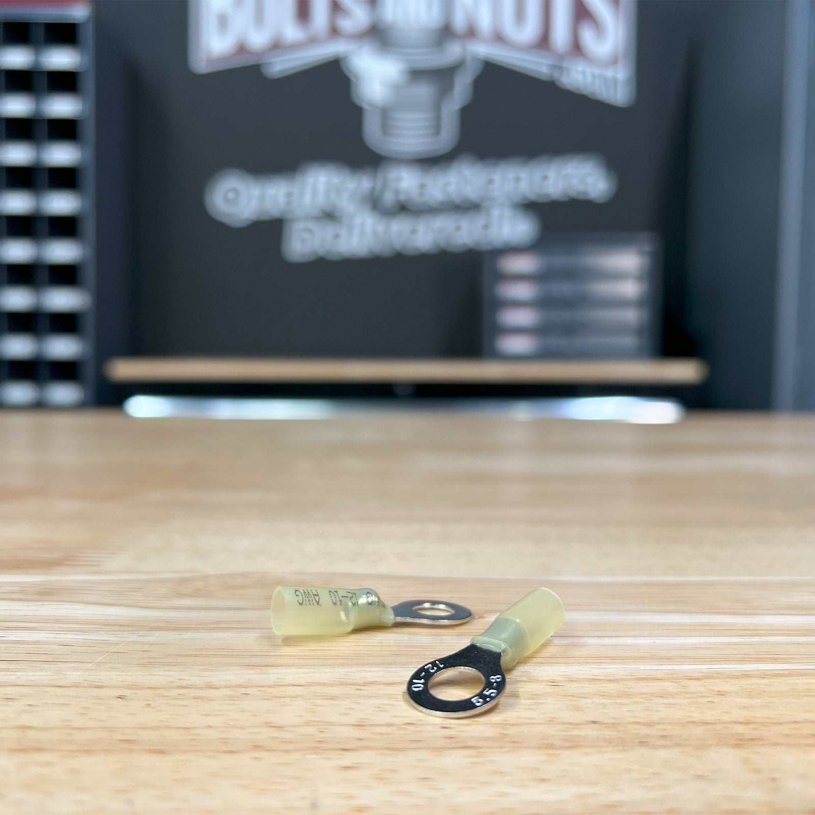 Yellow Heat Shrink Marine Grade 5/16" Diameter Ring Connectors, AWG 12-10