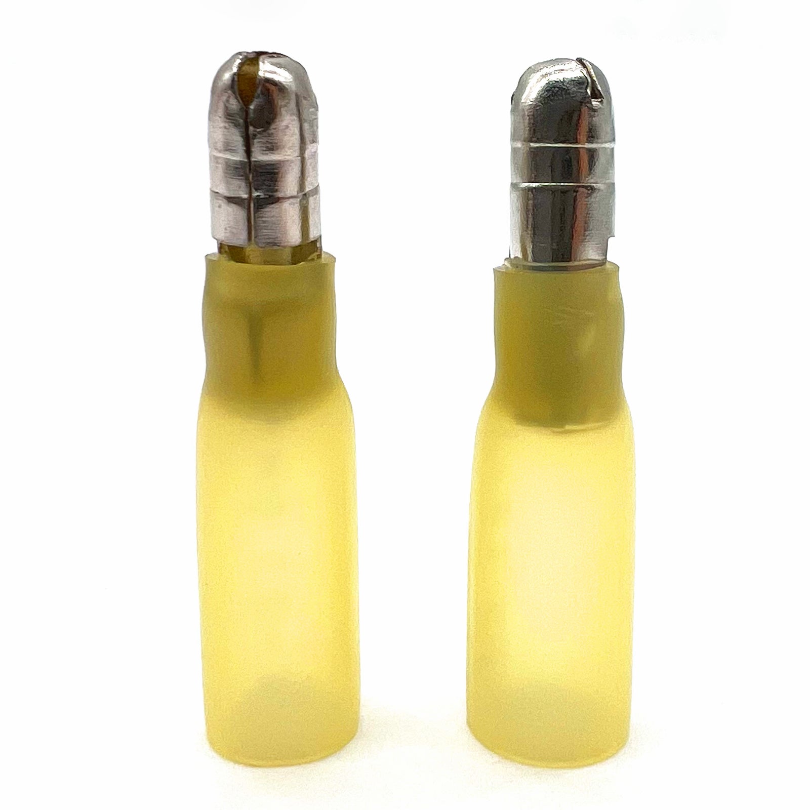Yellow Heat Shrink Marine Grade Male Bullet Connectors, AWG 12-10