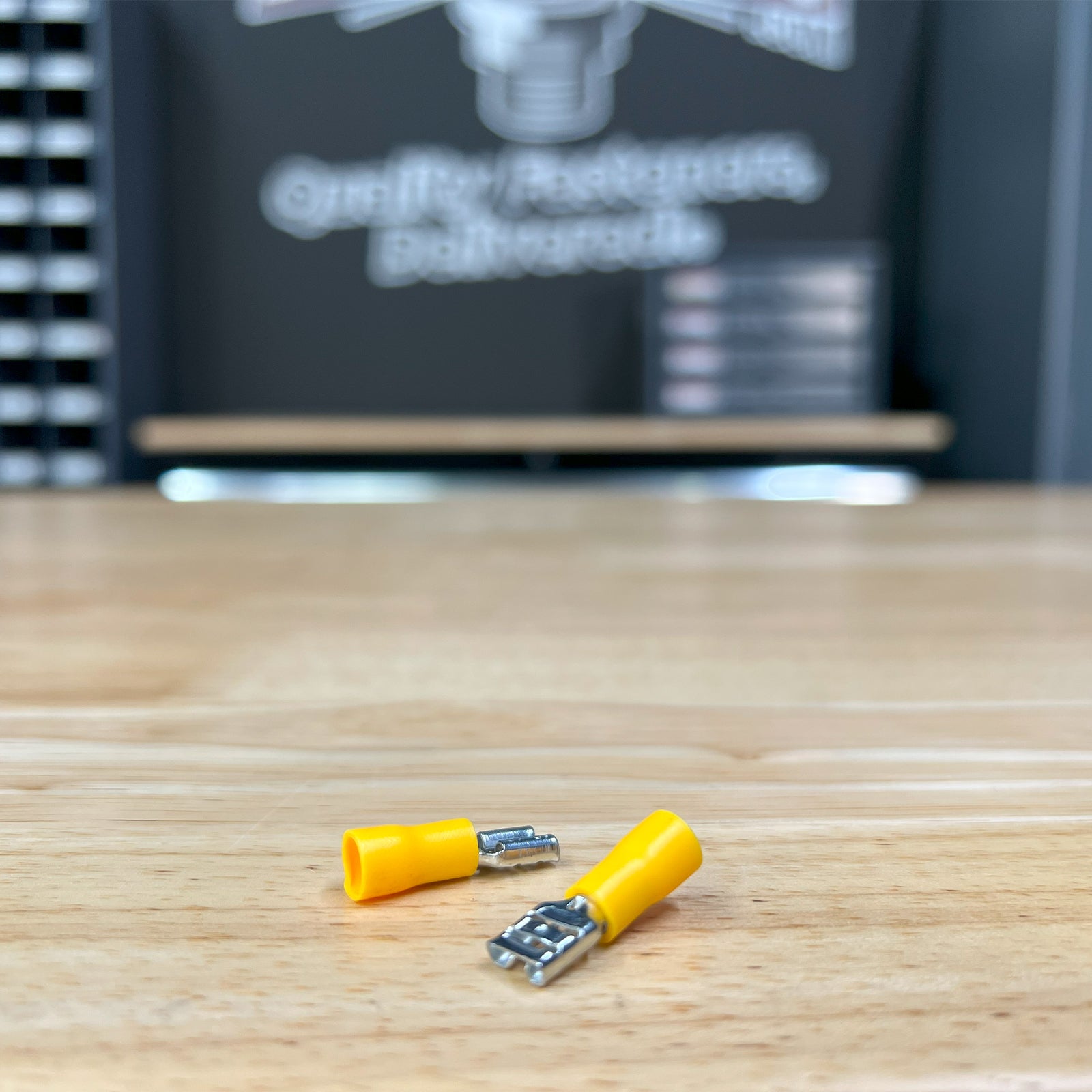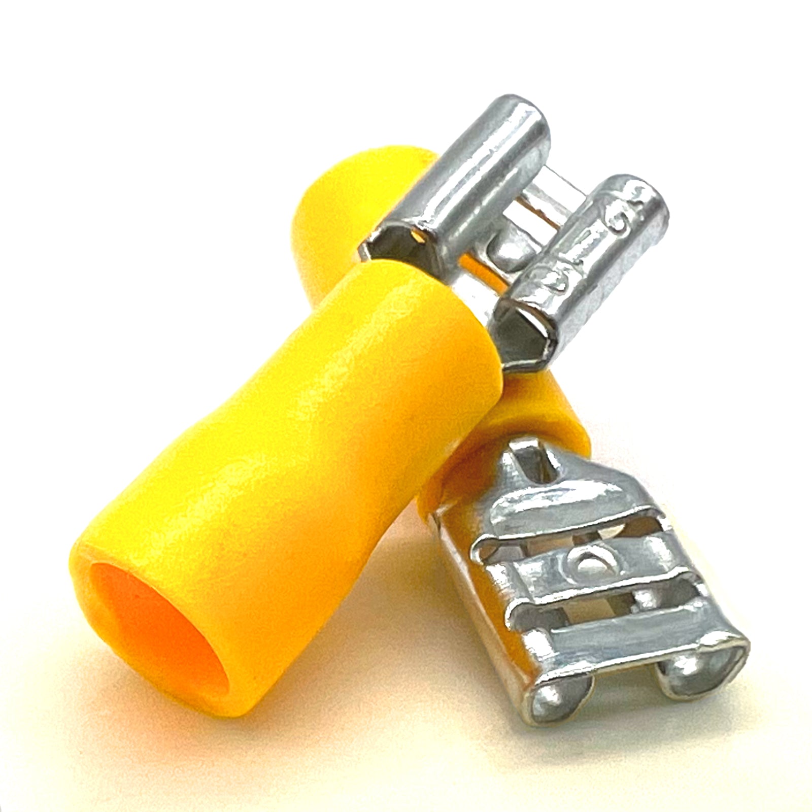 Yellow PVC/Vinyl Female Spade Crimp Connector, AWG 12-10
