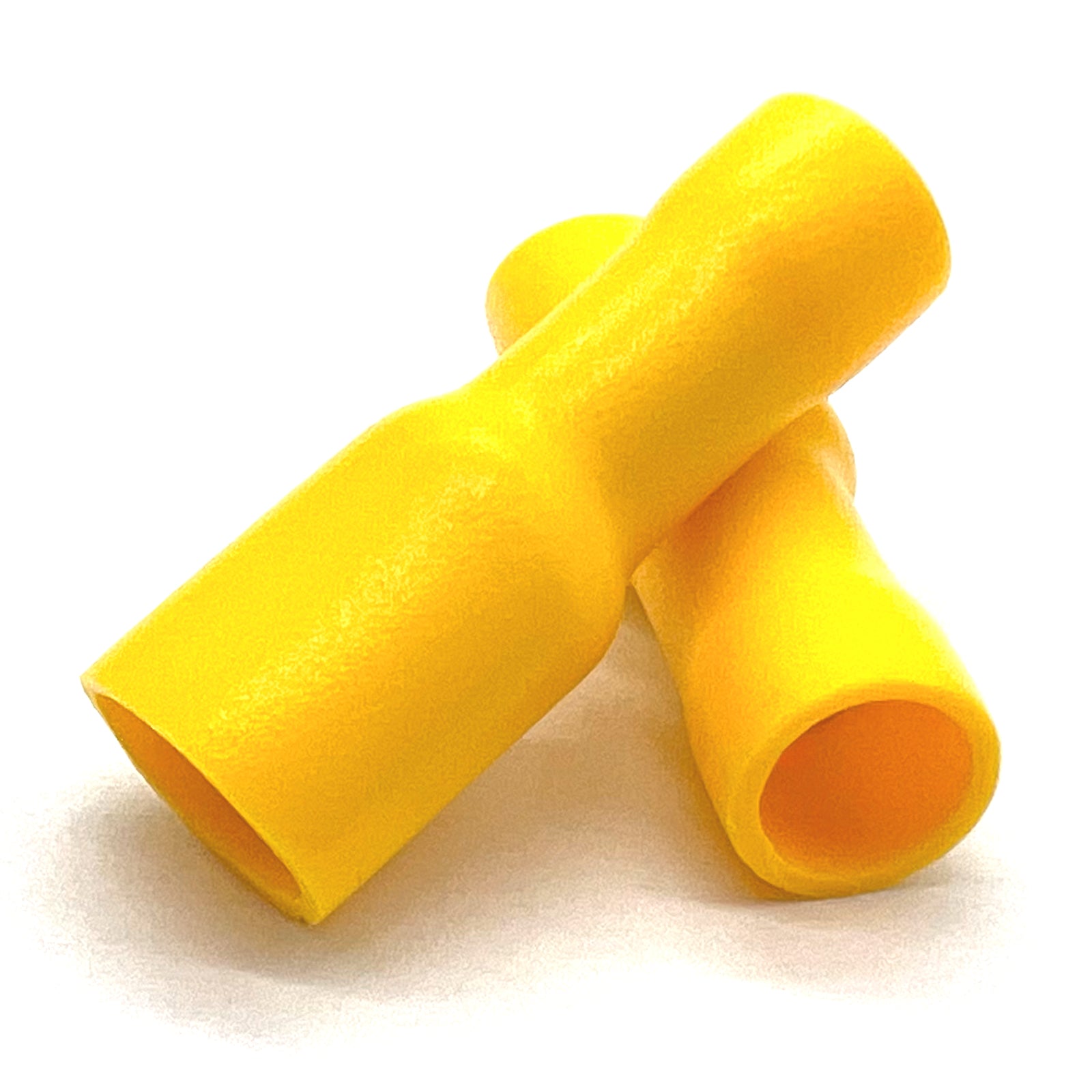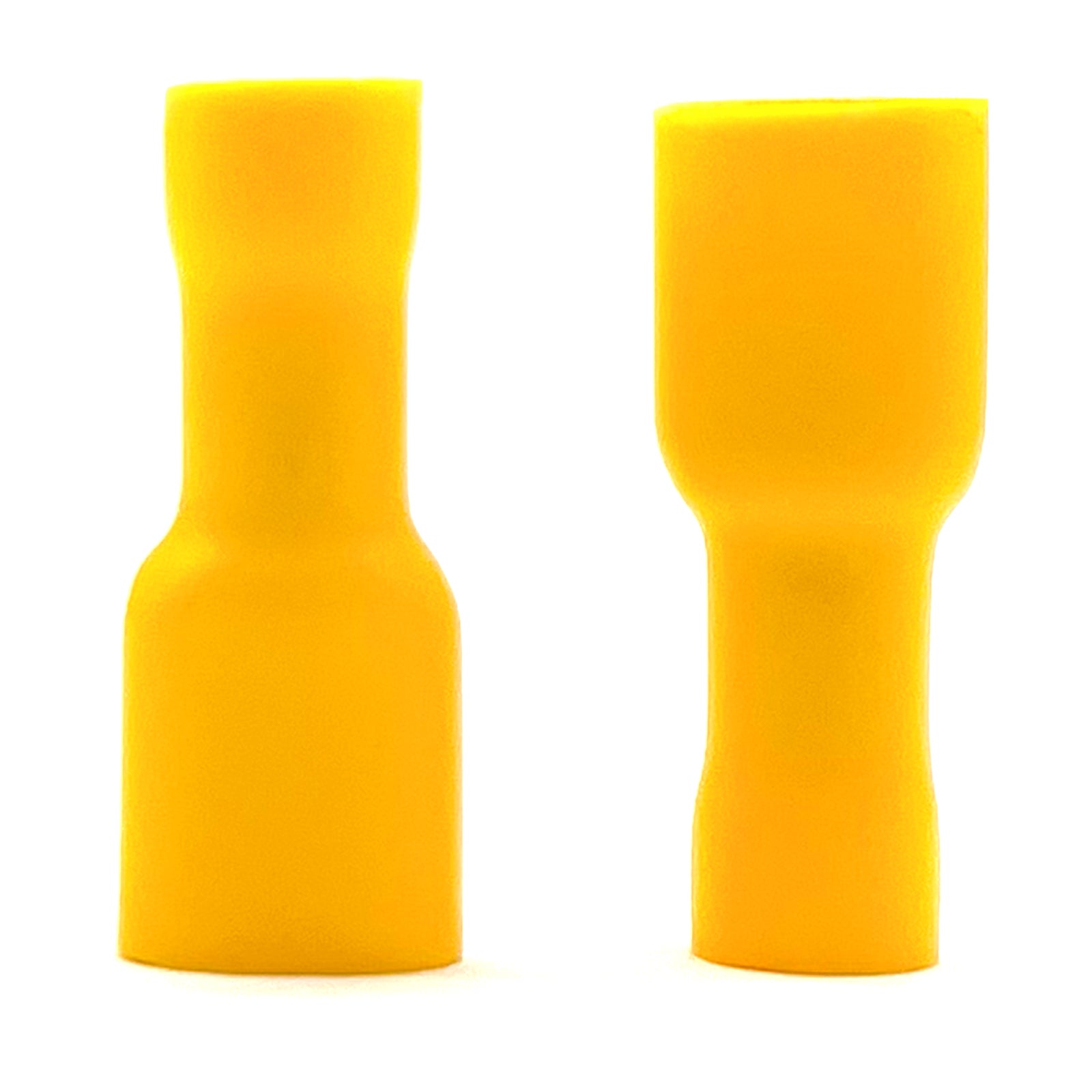 Yellow PVC/Vinyl Female Spade Fully Insulated Crimp Connector, AWG 12-10